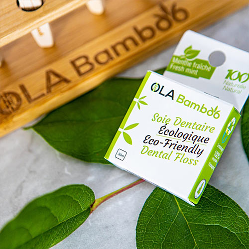 La soie dentaire OLA Bamboo est biodégradble et l'emballage est aussi recyclable.