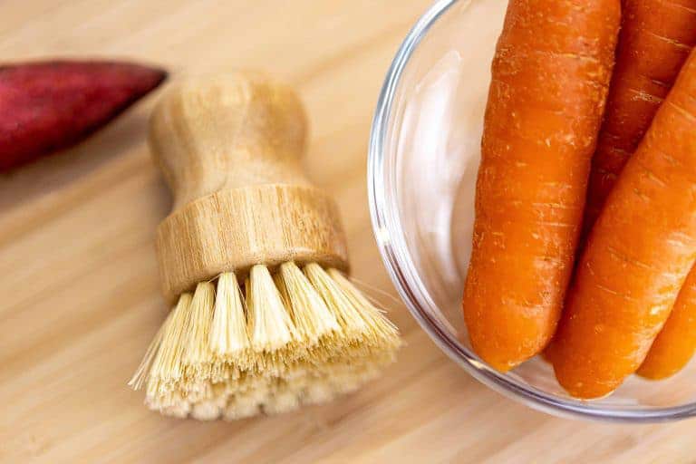 • Une brosse à légume en bambou, avec soies à base de sisal naturel